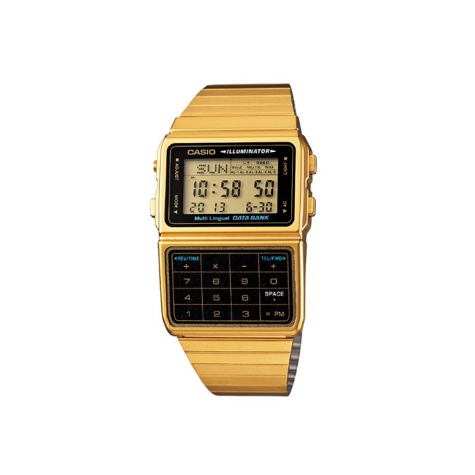 The Casio Classic Calculator Watch in Gold is a retro yet functional timepiece that blends vintage charm with practicality. Featuring an iconic 8-digit calculator, a sleek gold-tone stainless steel band, and a digital display, this watch is perfect for those who appreciate both style and utility. Its lightweight design, alarm function, and dual time capability make it a timeless accessory for everyday wea
