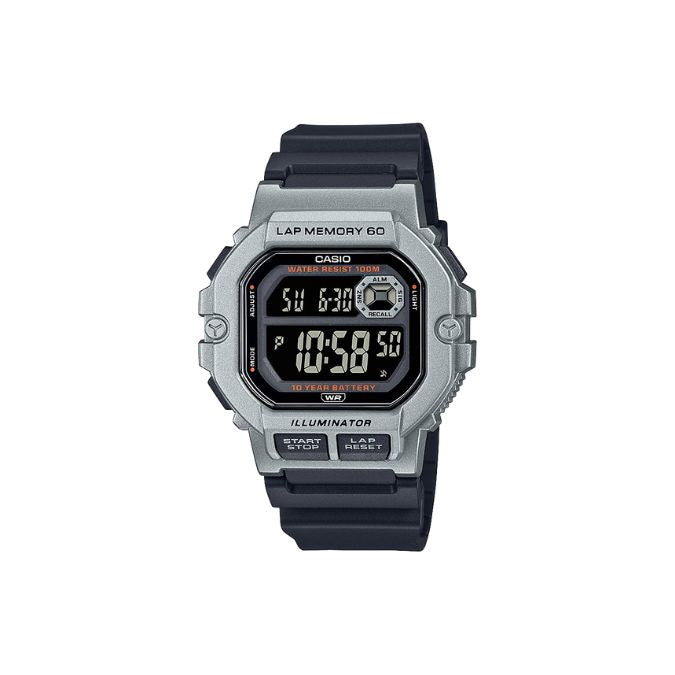 Casio - Digital Lap Watch Black + Silver Resin Band