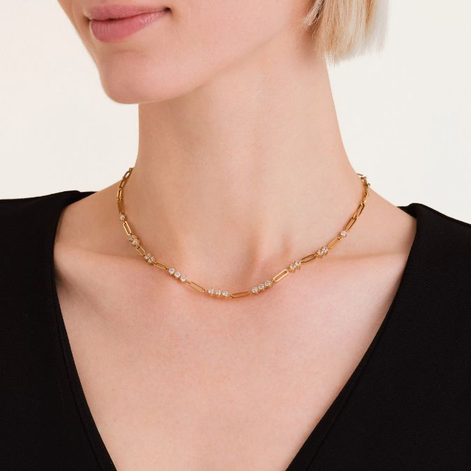 Sleek meets sparkle with the Rosefield Necklace! Featuring modern paperclip links accented with shimmering cubic zirconia, this piece blends elegance with an effortless edge.