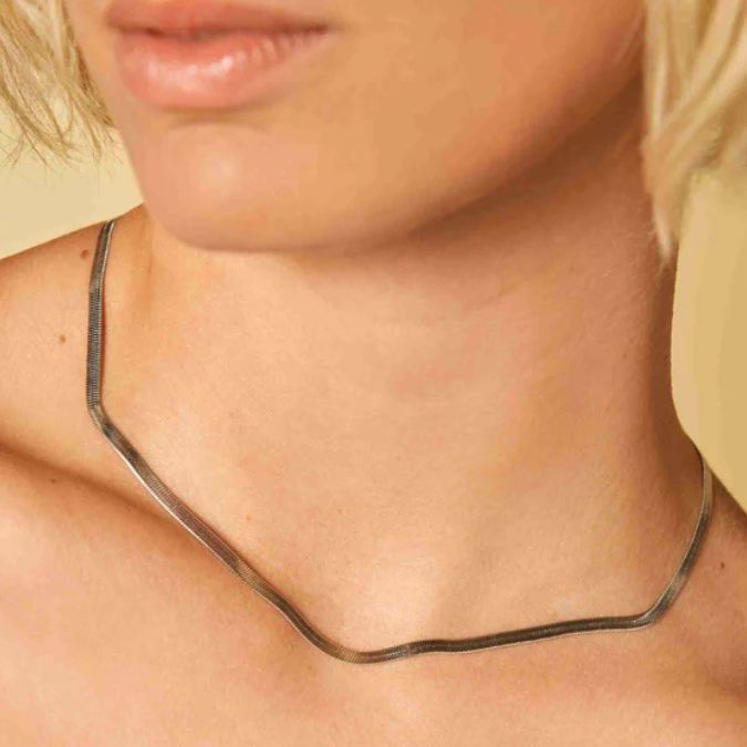 The Rosefield Snake Chain Necklace features a simple yet bold design. This stylish piece can be worn alone with a cute crop top over your favourite t-shirt.